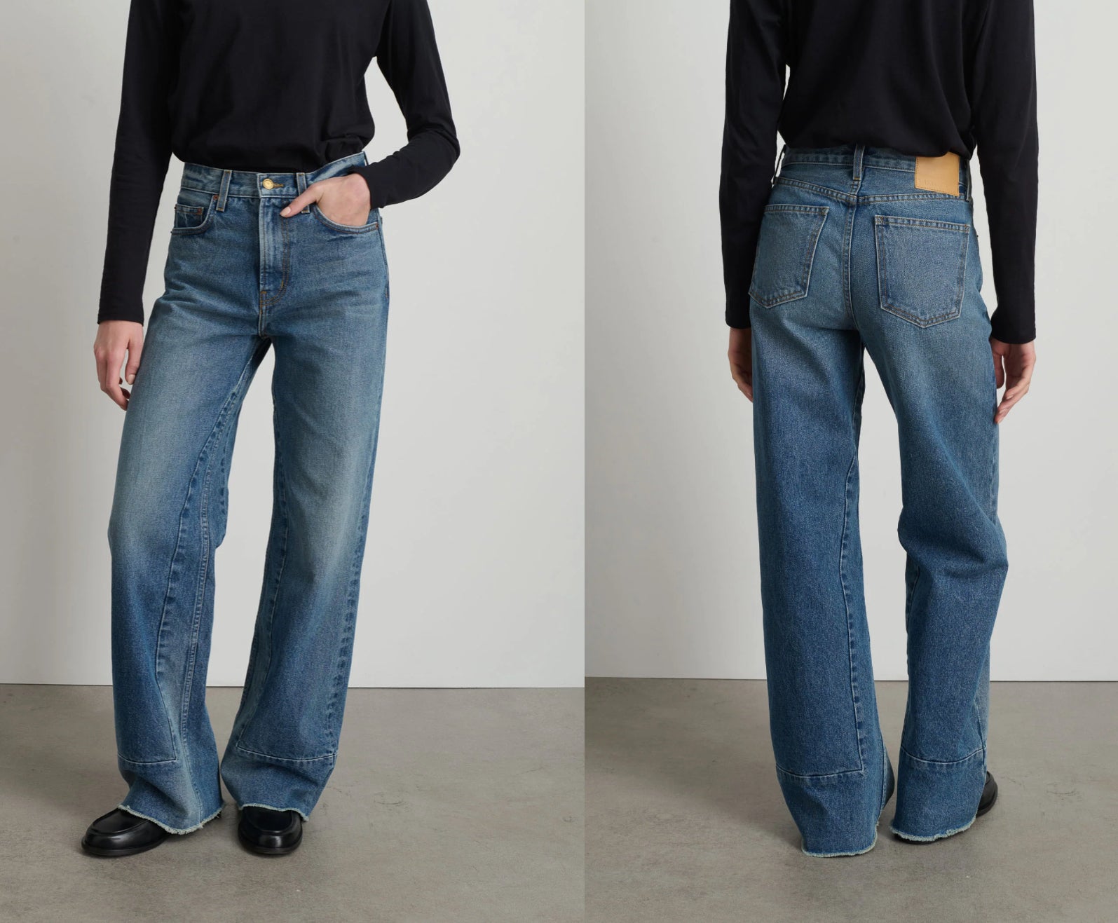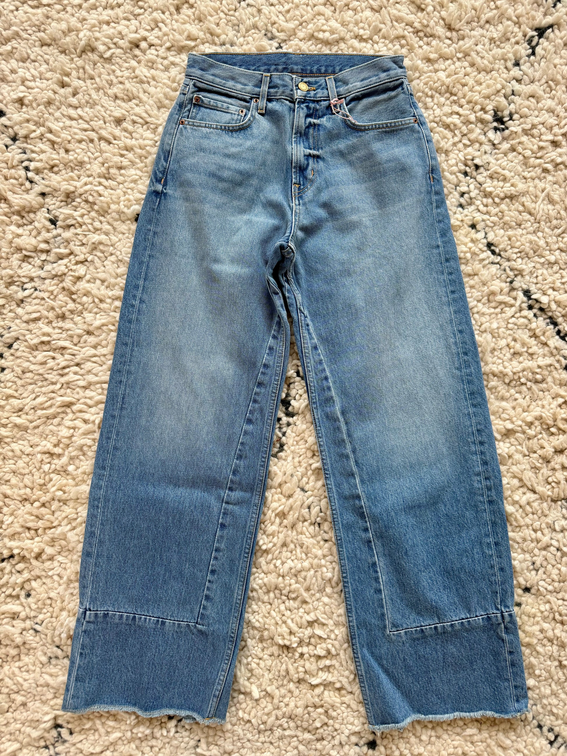 A cool mid rise fit with a la garconne feel. Slim through the hip and thigh with unique seaming construction to widen the leg shape.