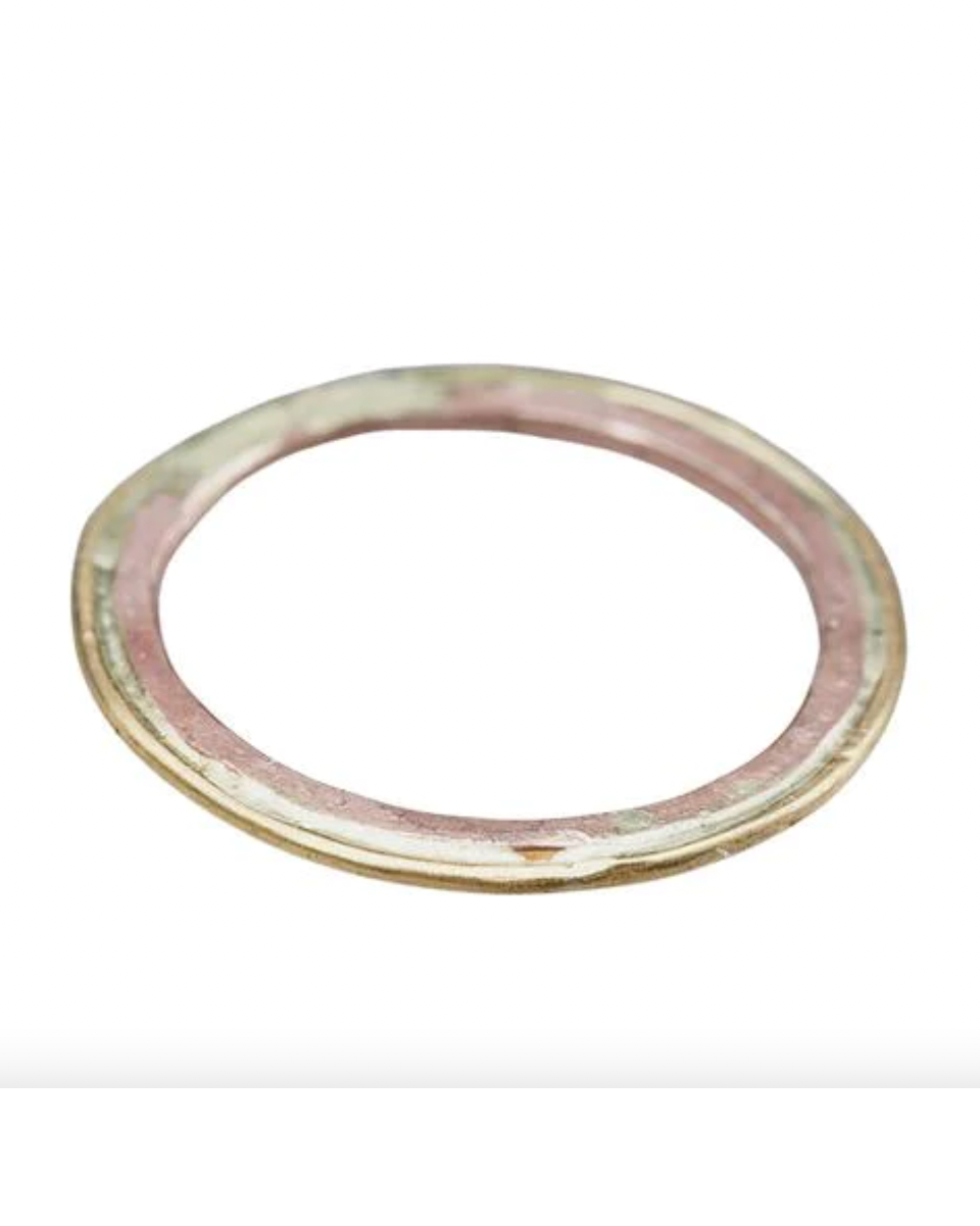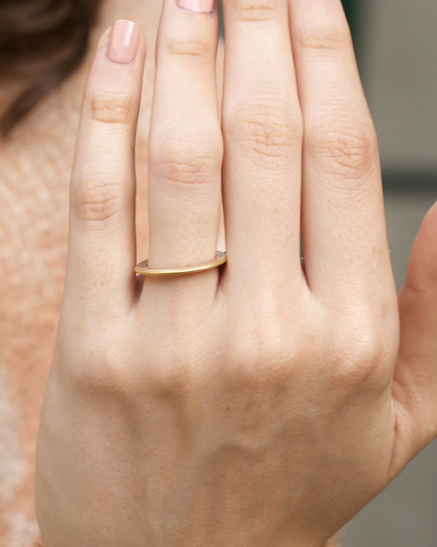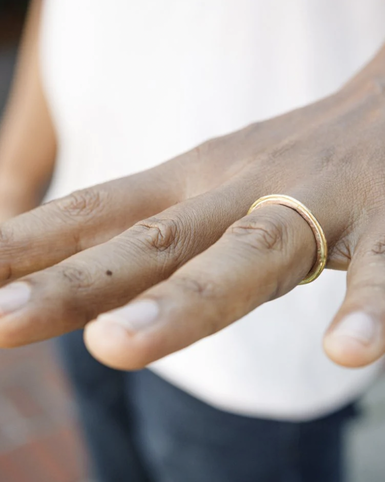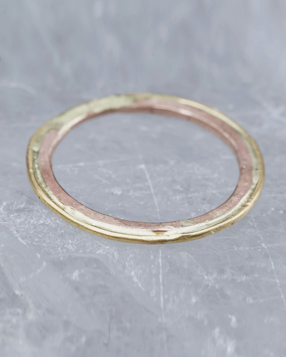 The ridge ring is made of 14k rose and yellow gold and 22k yellow gold