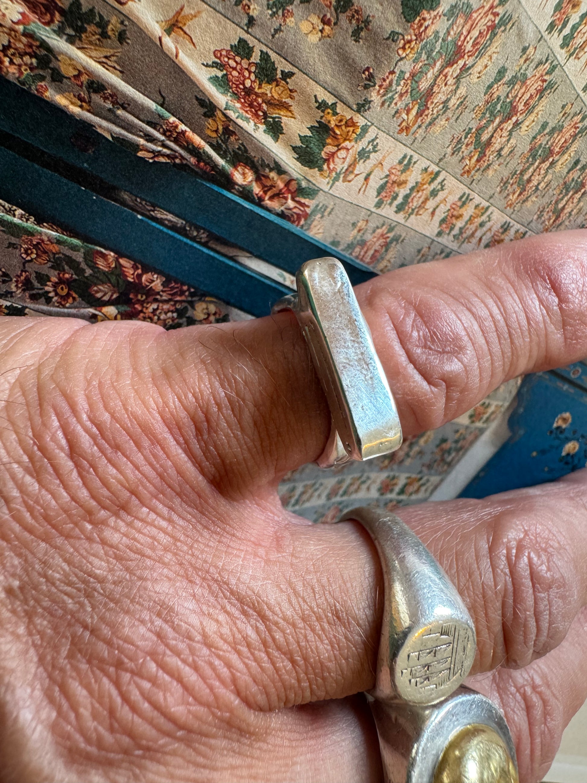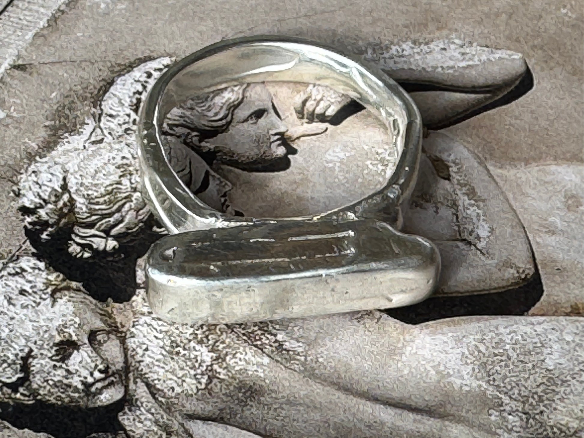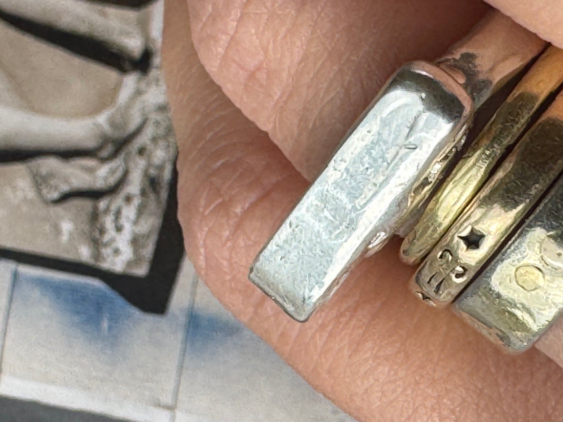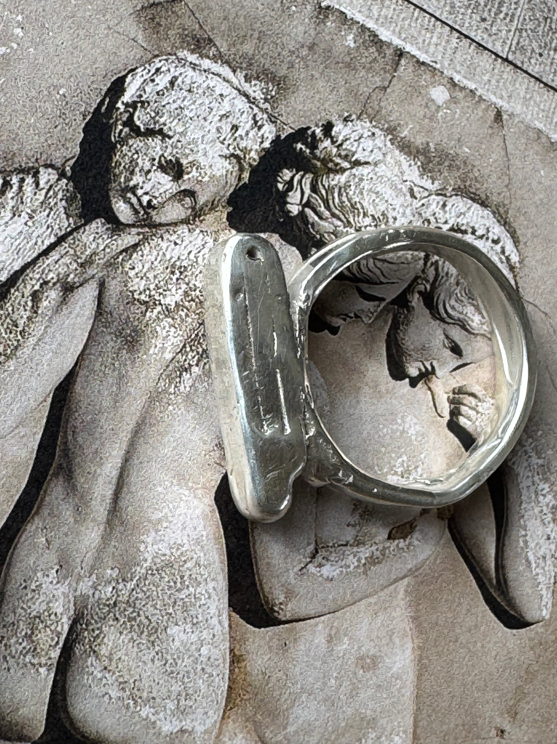 Handcrafted Sterling silver ring. Organic forms, like they’ve been tumbled in the ocean and emerged a wonky organic form. So attracted to sea like nature inspired forms of jewellery.