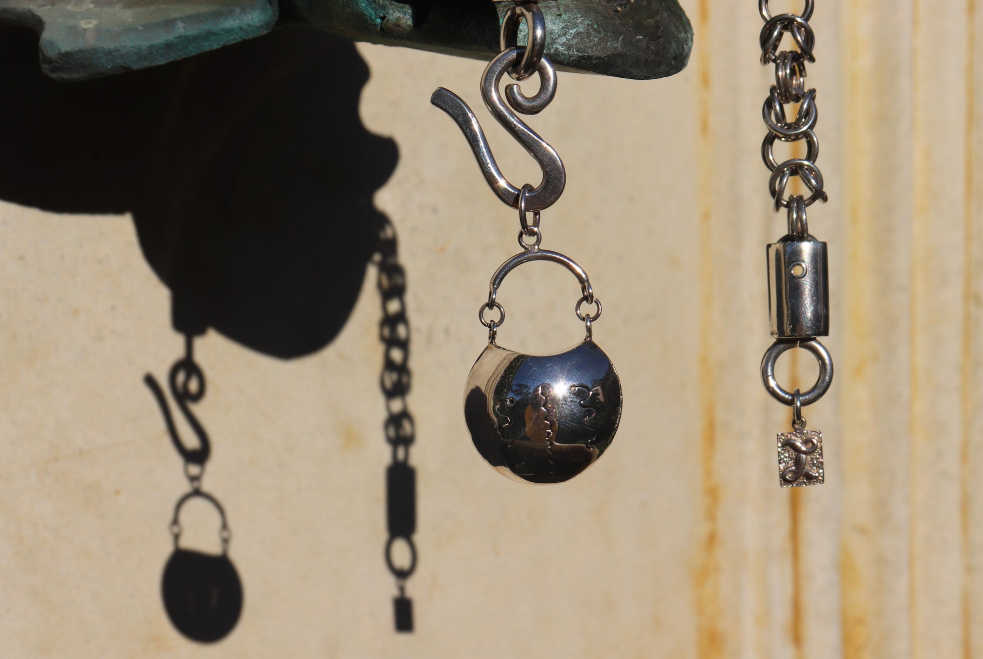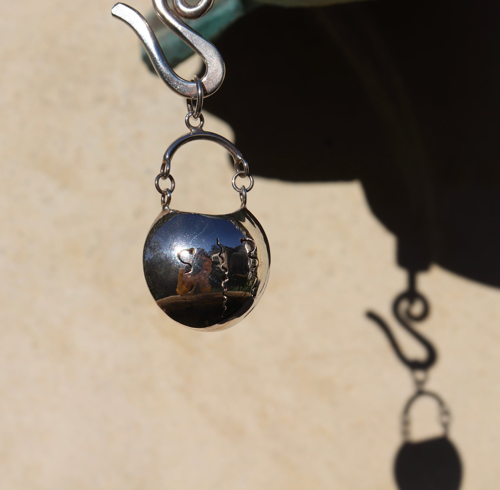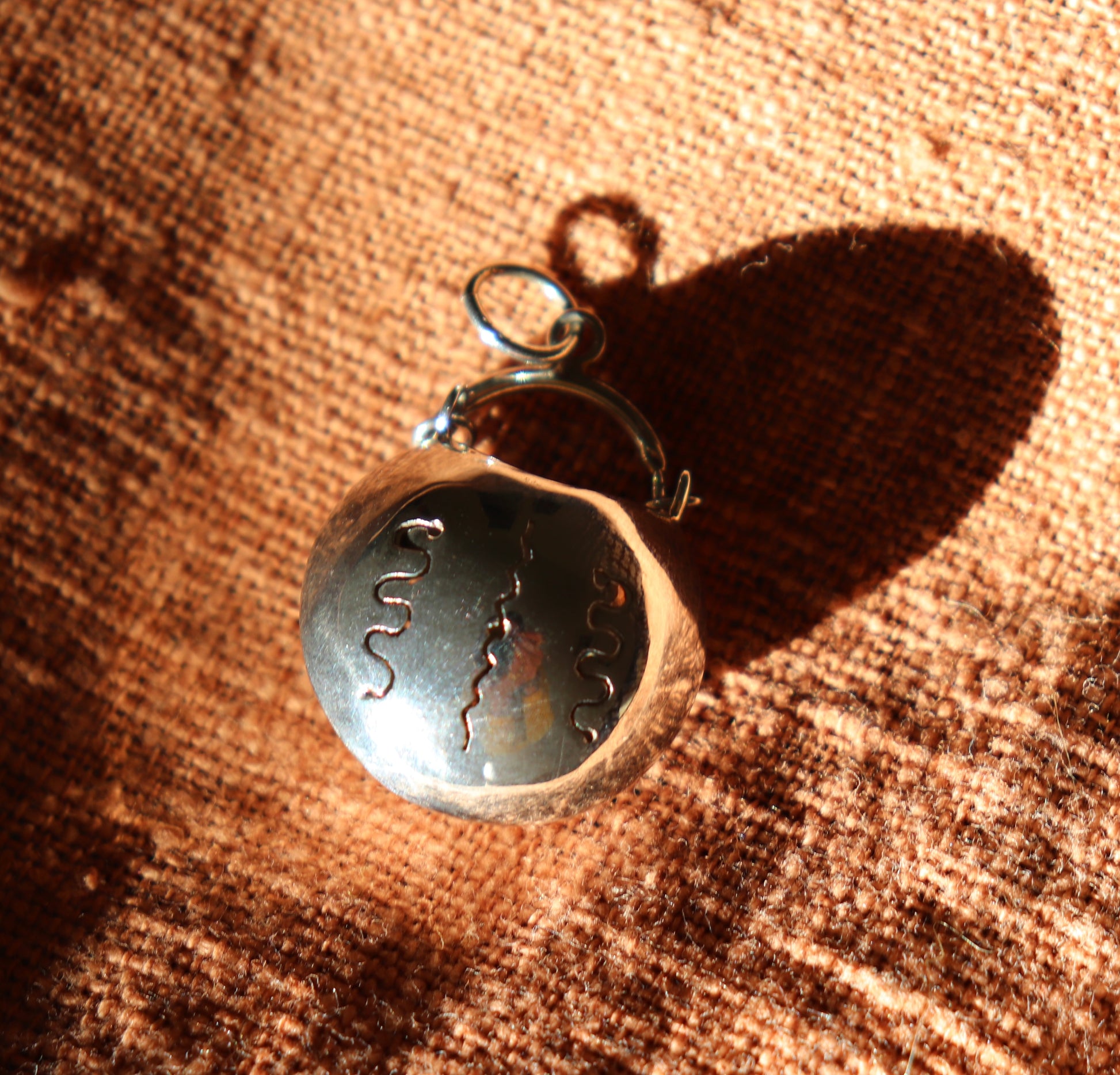 Beautiful sterling silver pendant with snake imprint carvings. A unique piece.