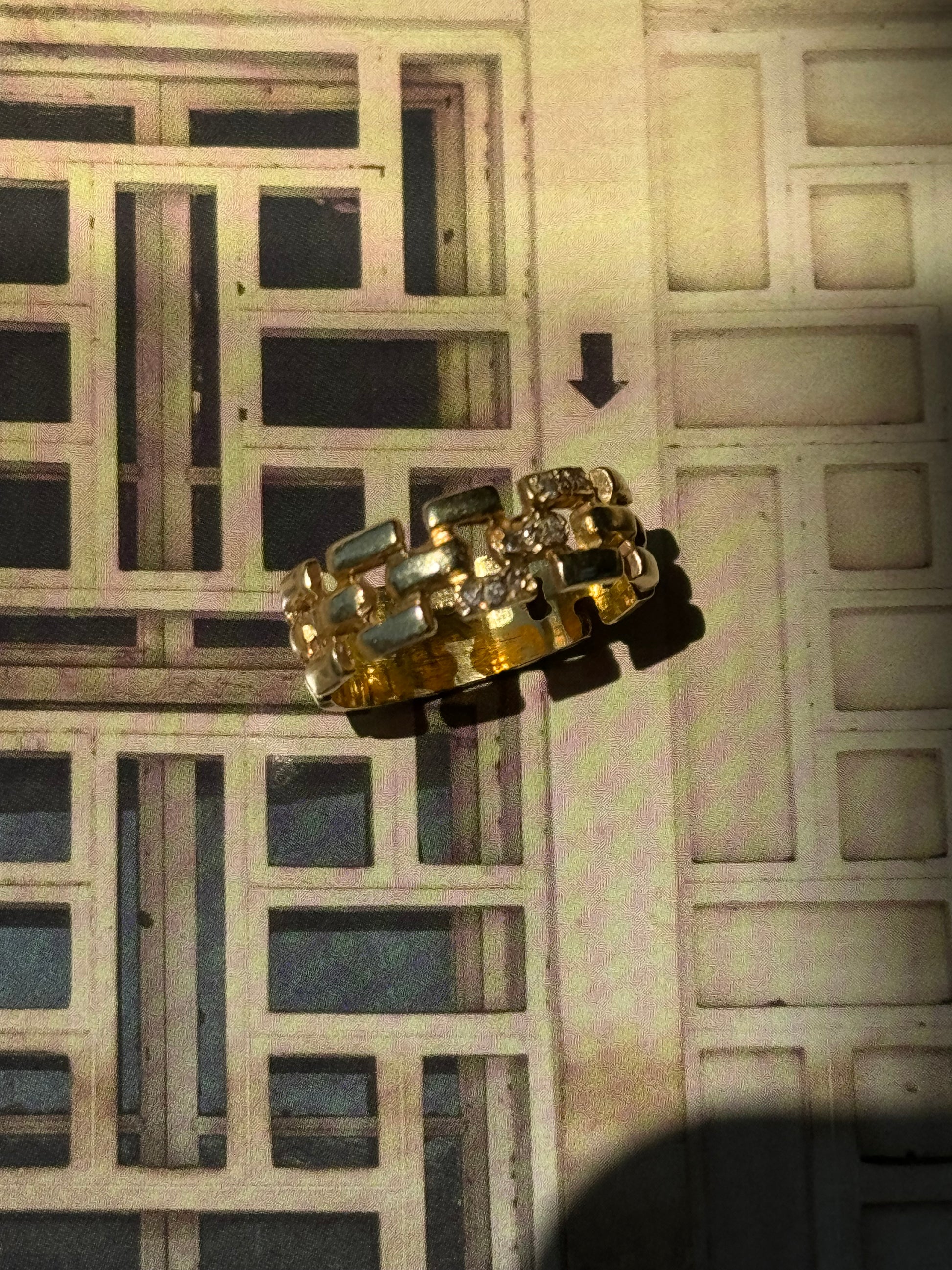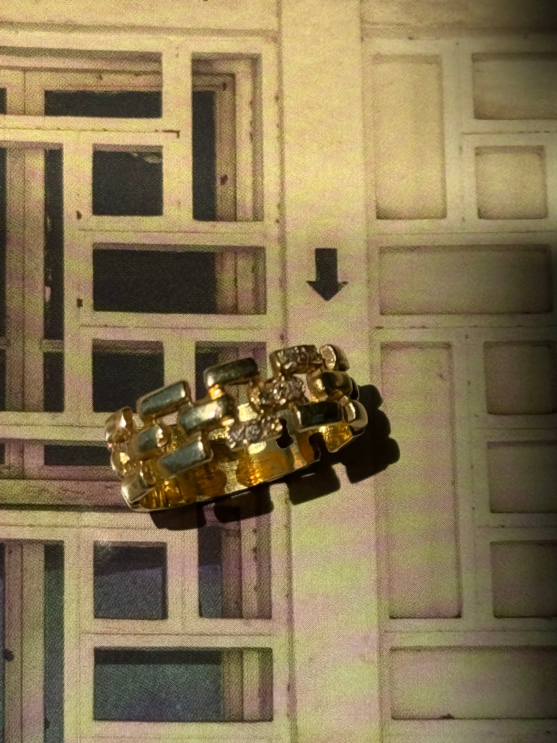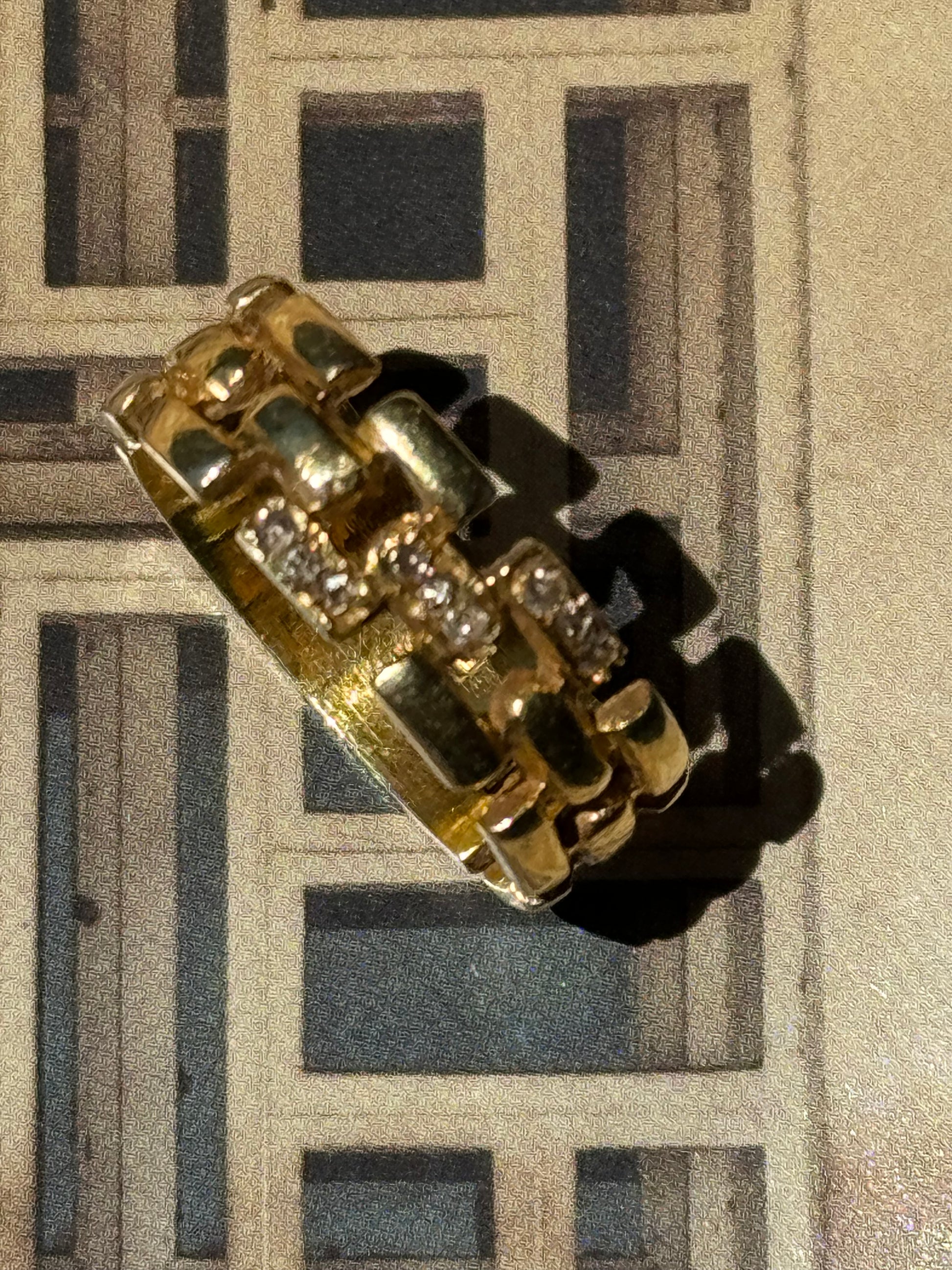 This Stunning 18ct gold ring, feat. 9 diamonds, size M.