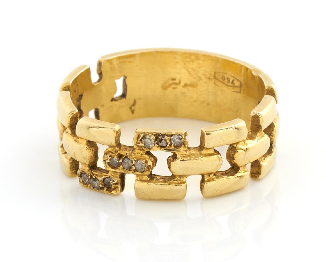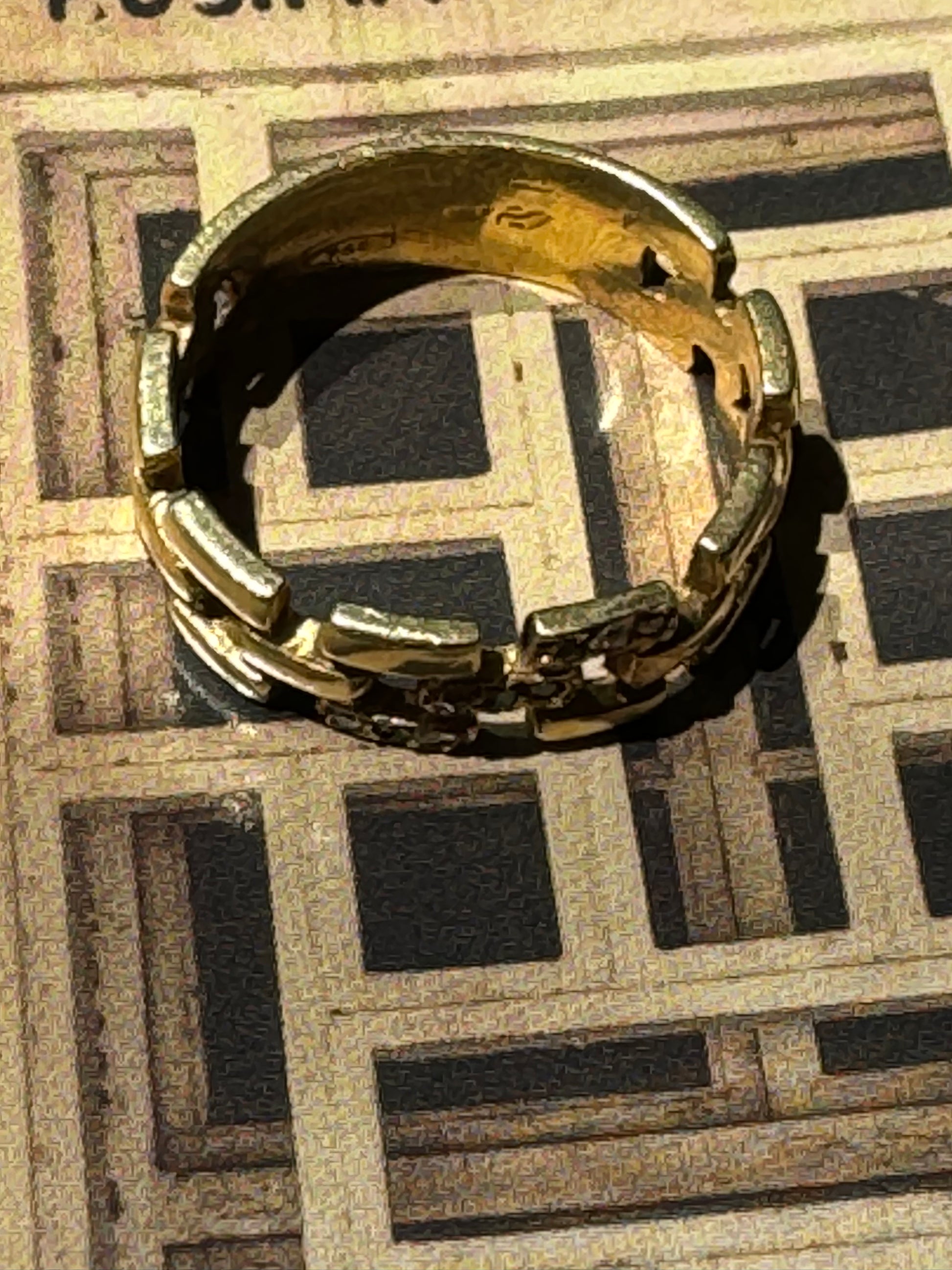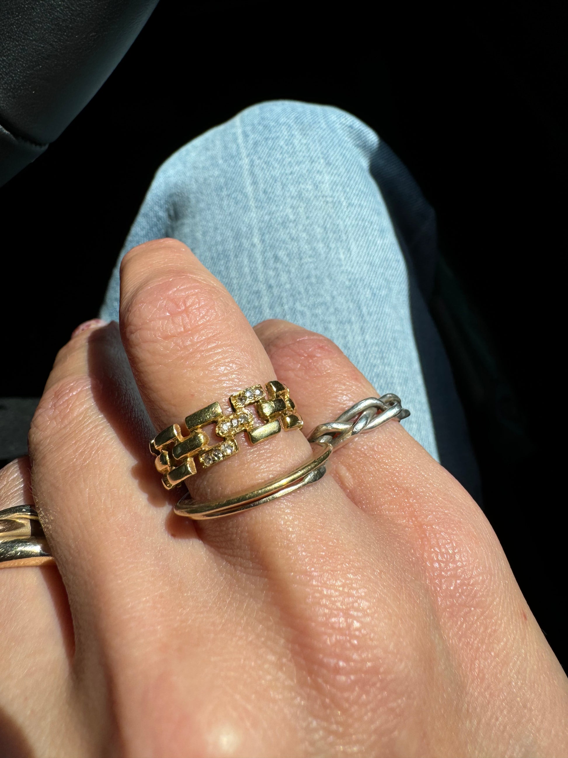 This Stunning 18ct gold ring, feat. 9 diamonds, size M.