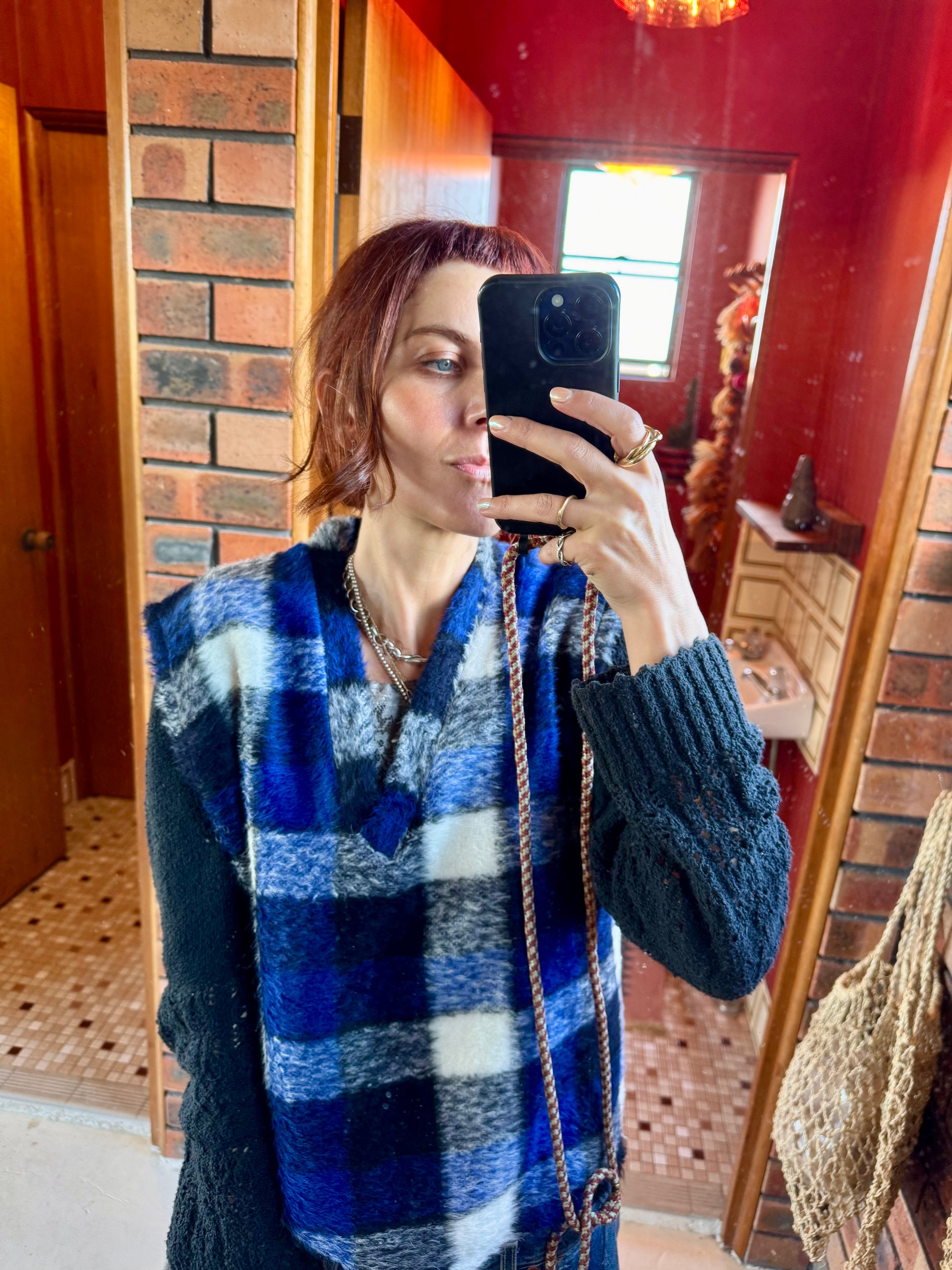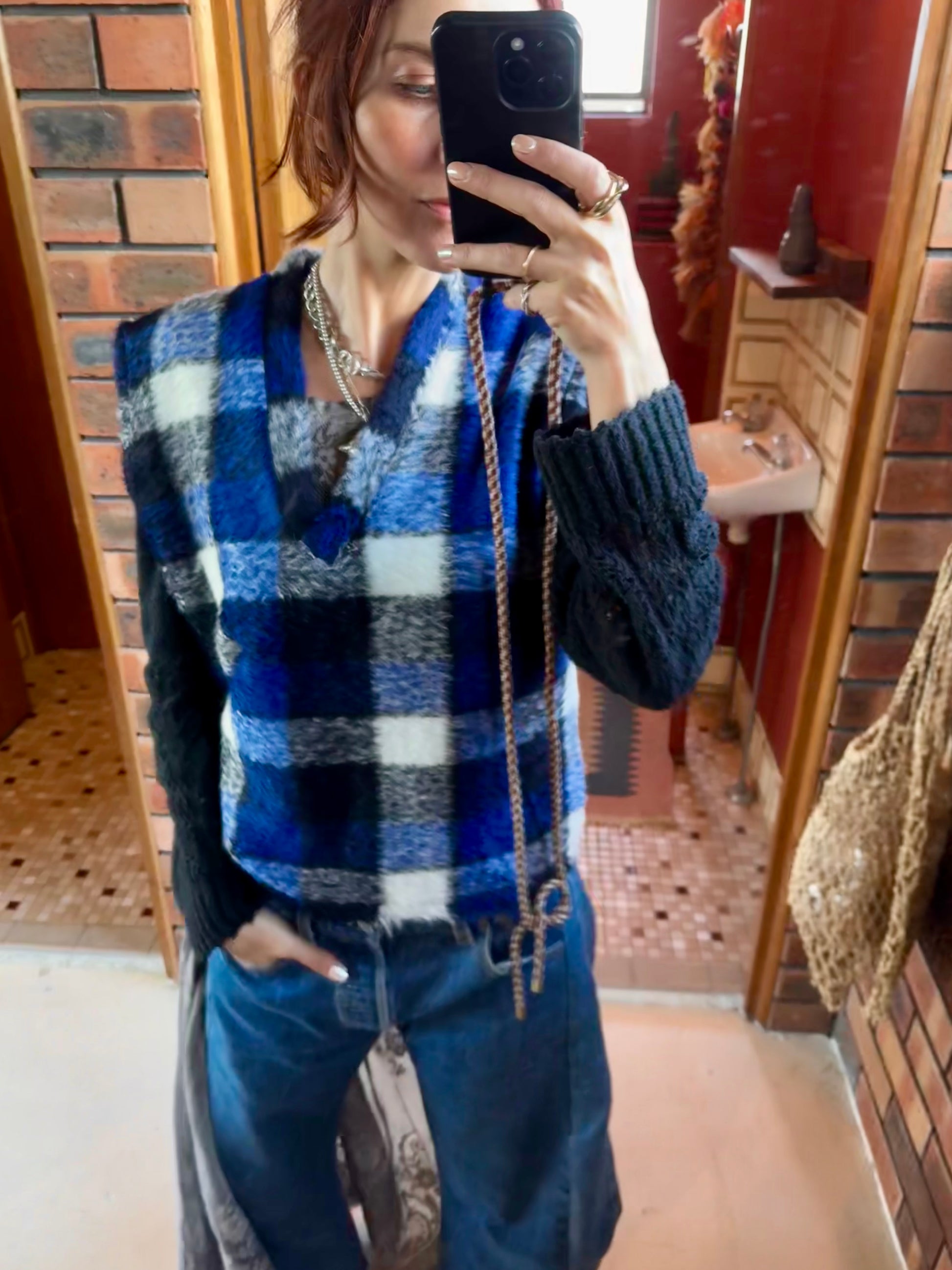 A Italian check 100% wool vest, slightly oversized. A perfect timeless layering piece. Will comfortably fit a S - L.
