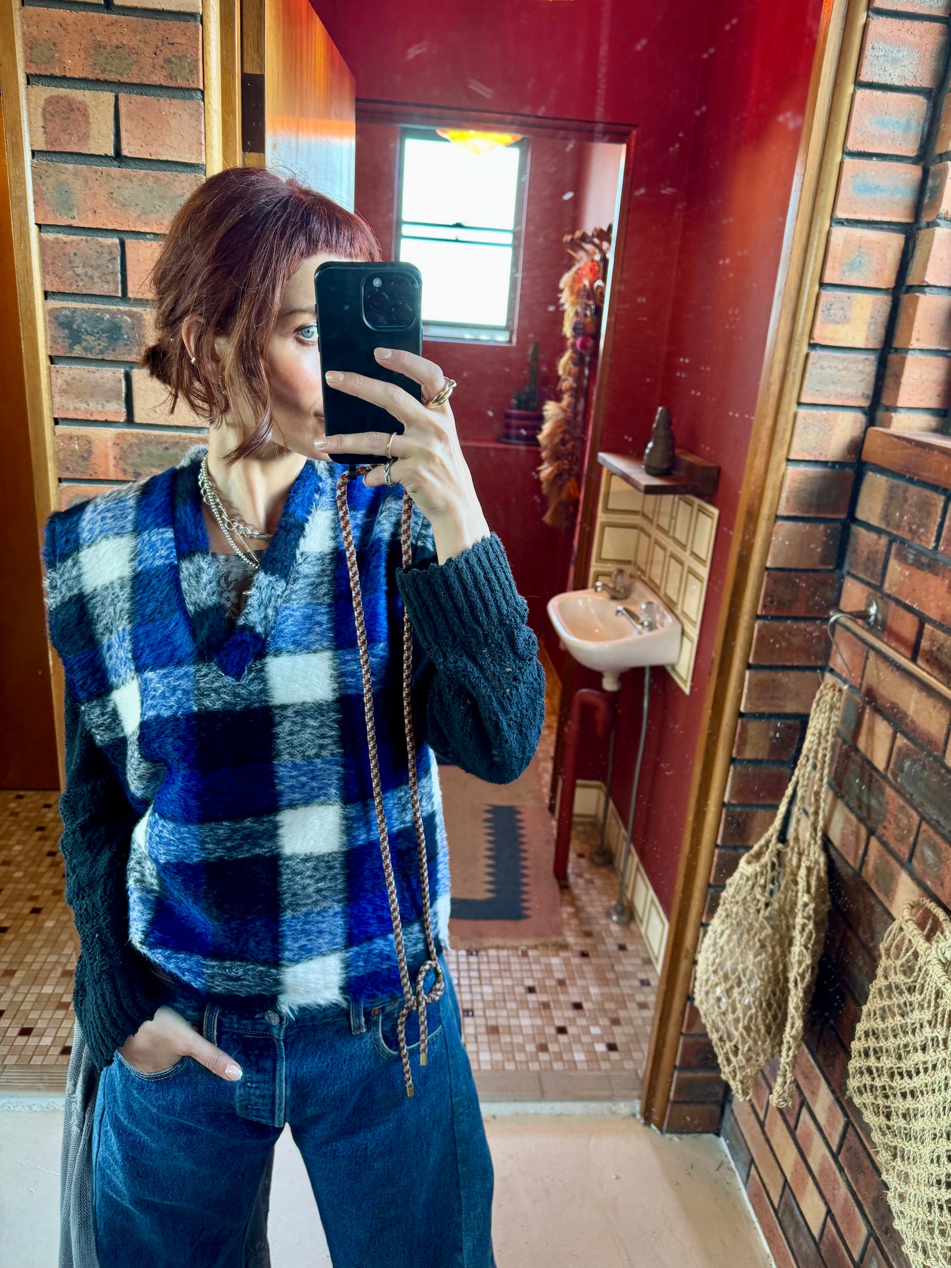 FIELD BLU CHECK ITALIAN WOOL VEST