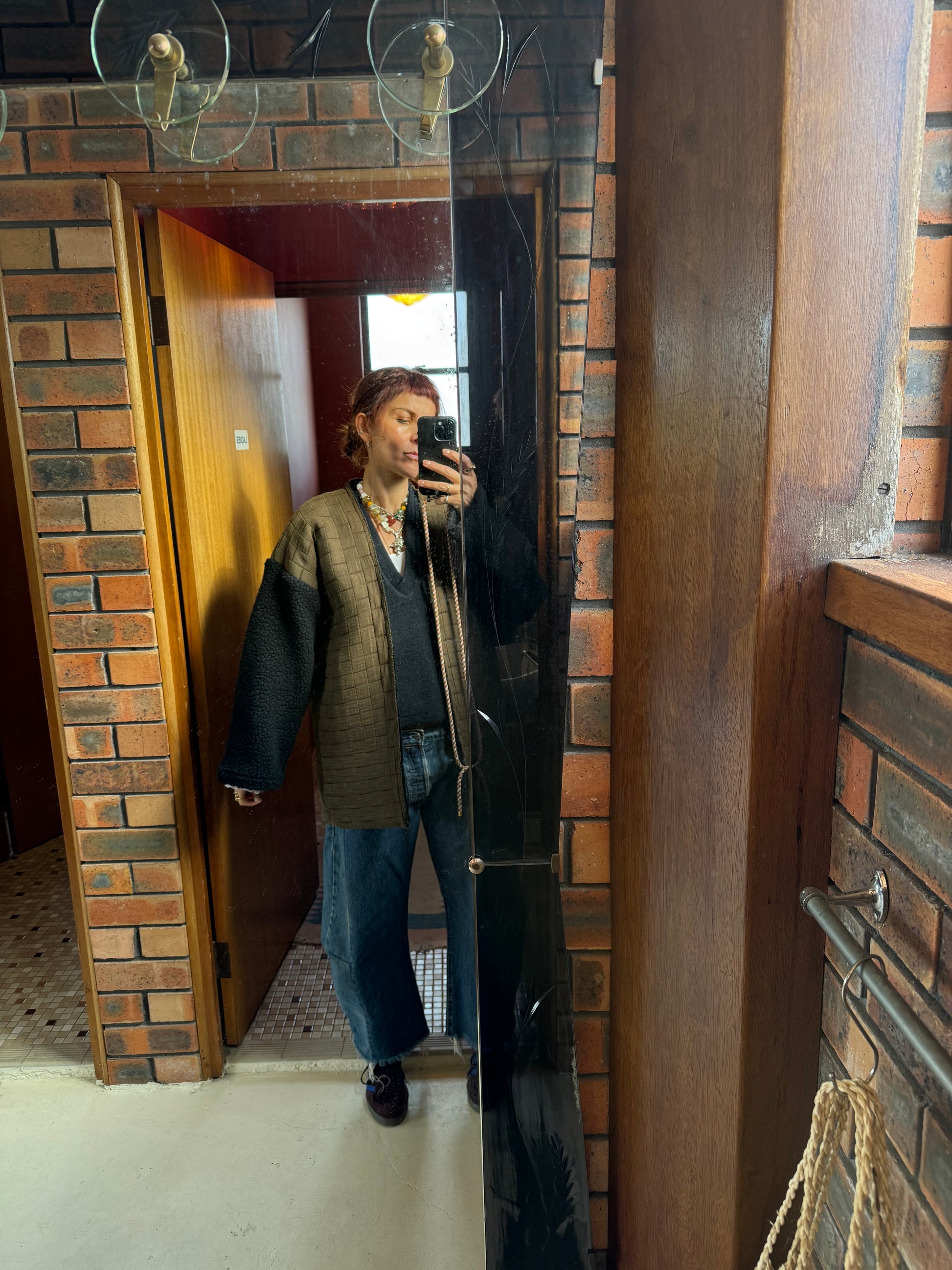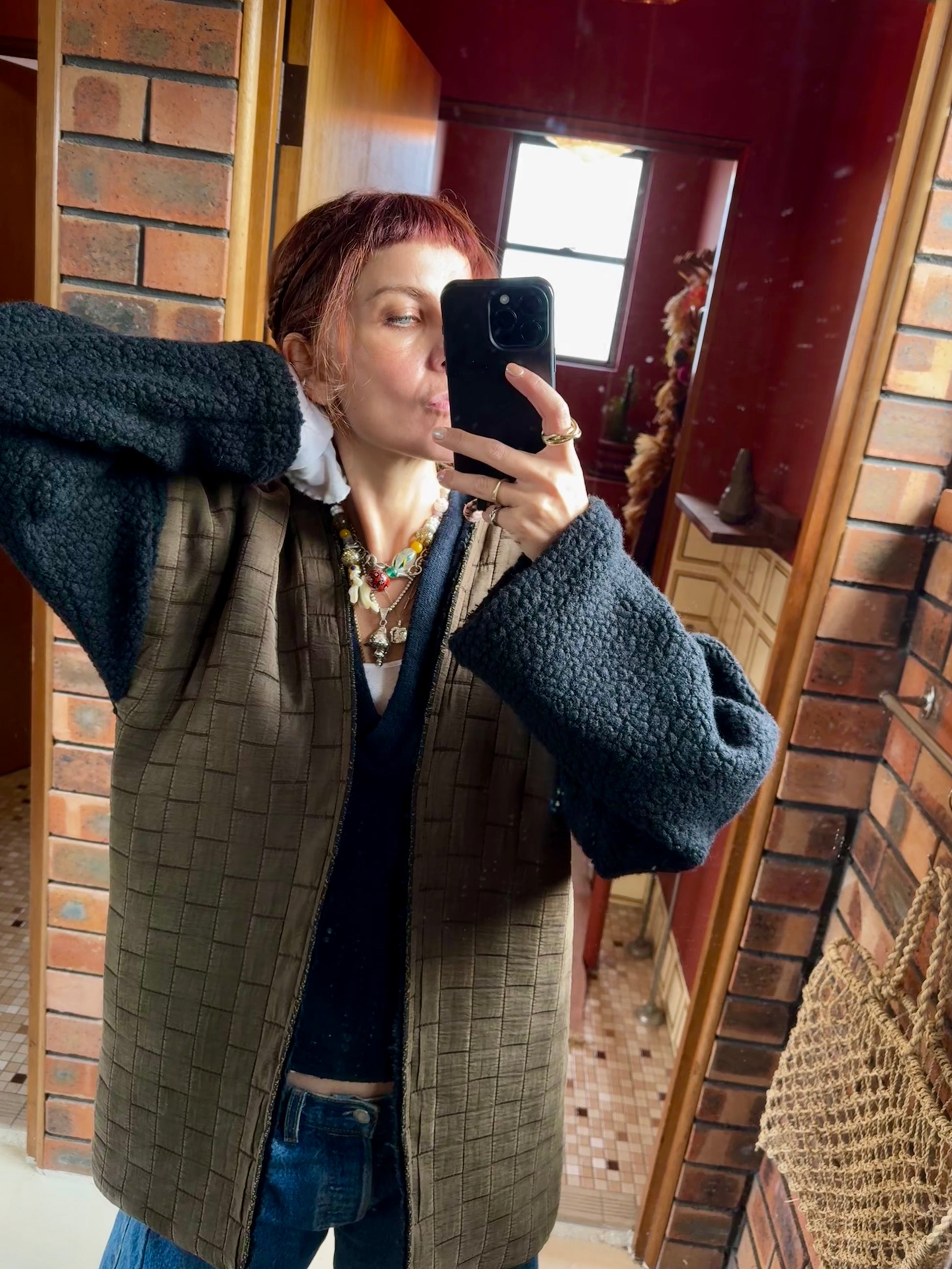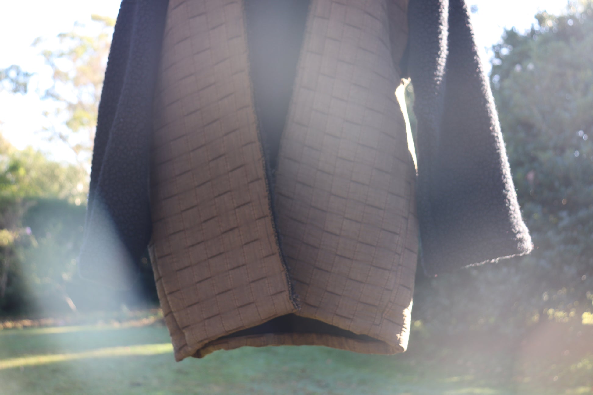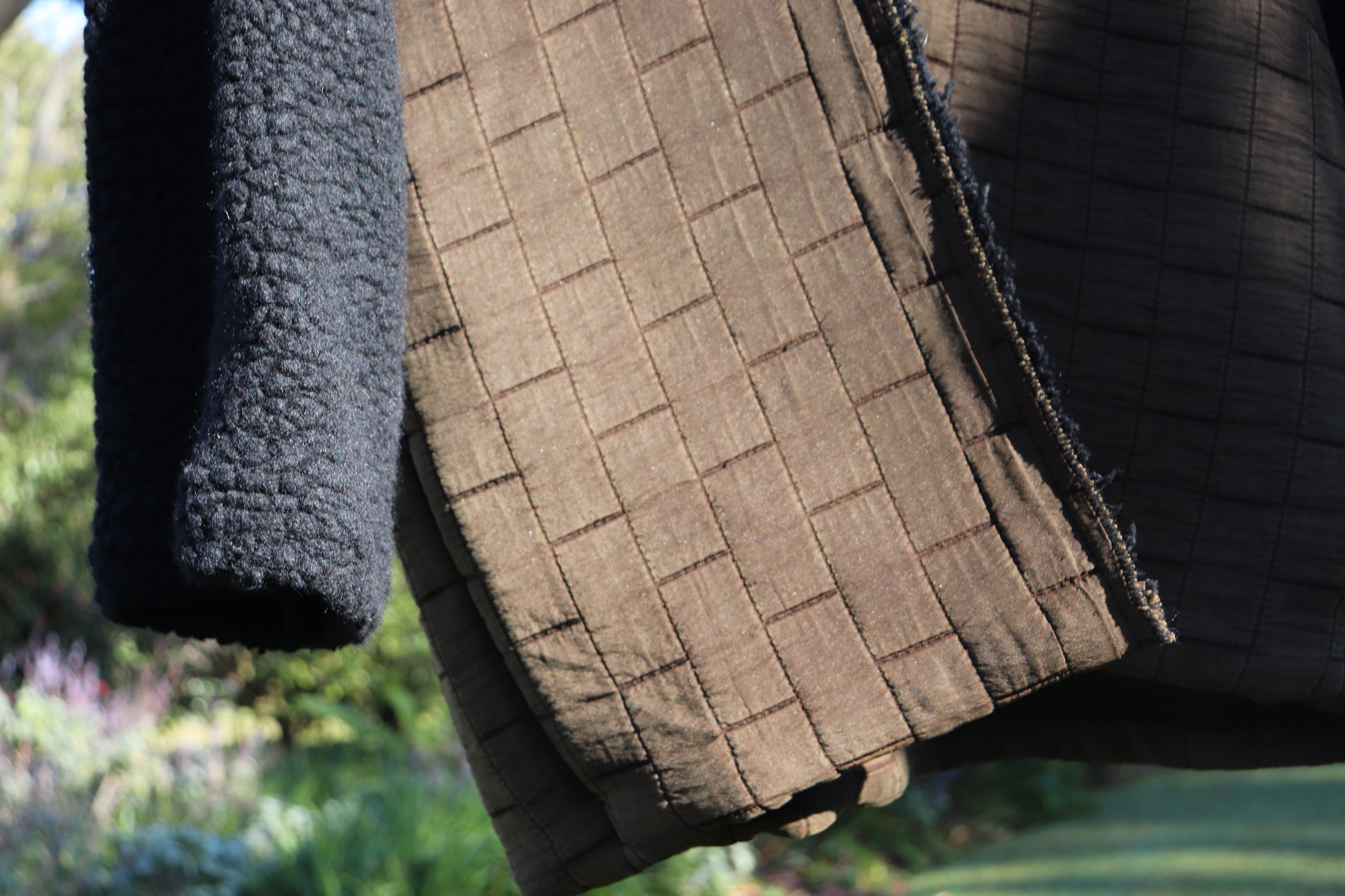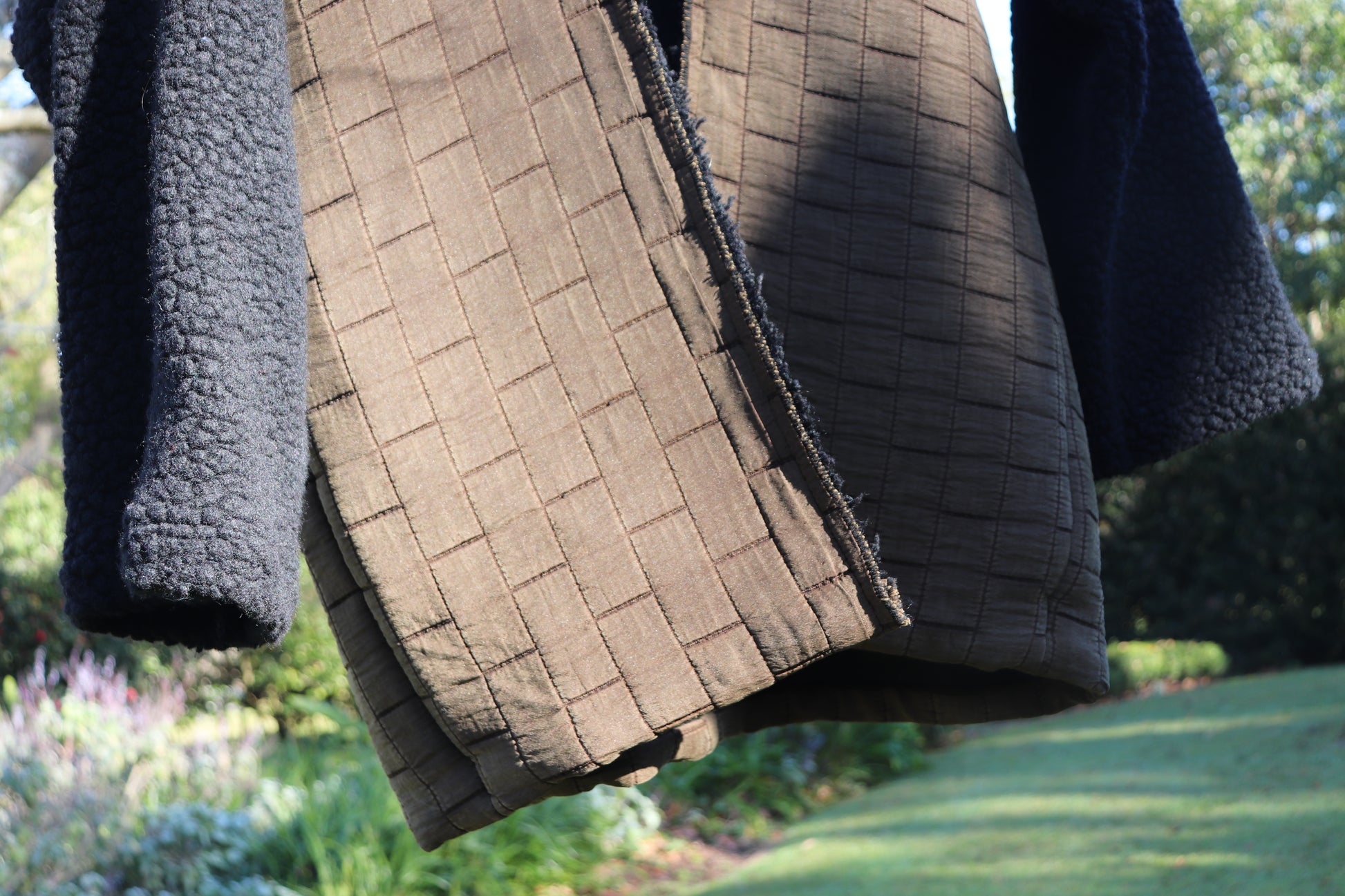 A one-of—kind patchwork kimmo, made with italian wool Sherpa silk & italian quilted brushed cotton. Incredibly timeless piece