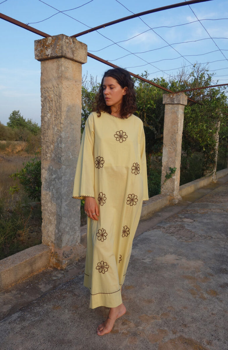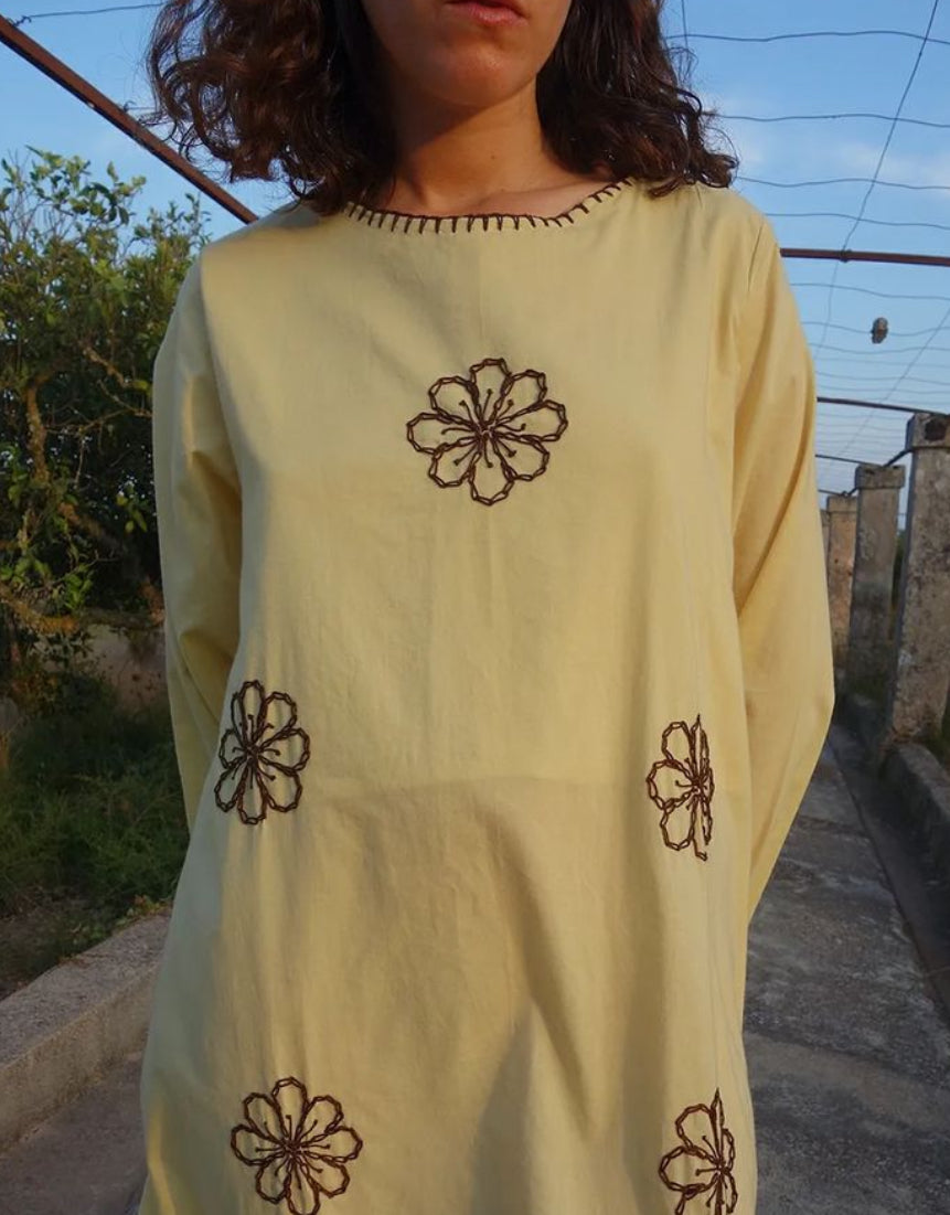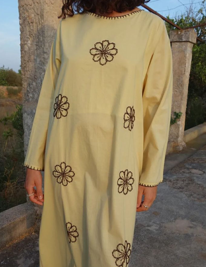 FLOWER ORGANIC DRESS WITH EMBROIDERY