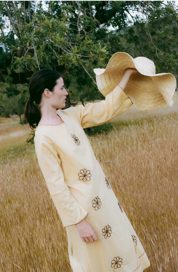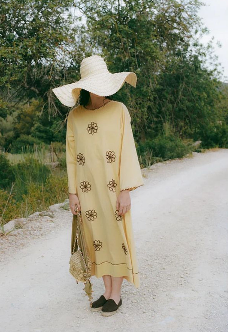 A Stunning Summer organic cotton dress, feat. Hand embroidery details.