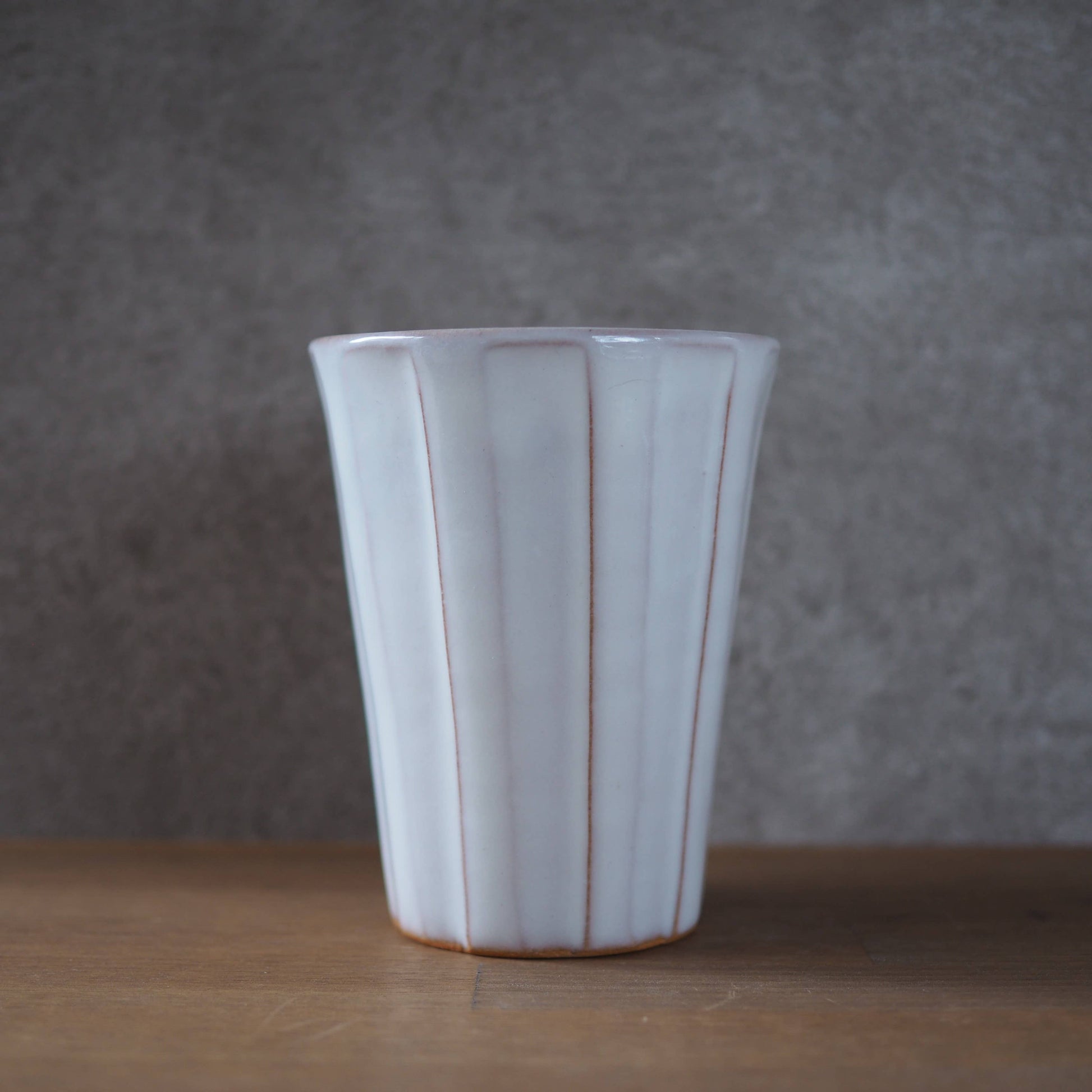 This is a HAGIYAKI free cup. The distinctive shinogi is done one by one by hand. The wide mouth is ideal for soft drinks and alcoholic beverages with plenty of ice.