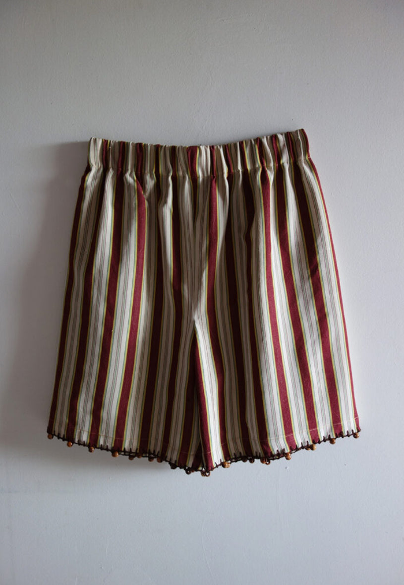 Stunning Summer handwoven Shorts feat. Hand embroidered beaded edges.