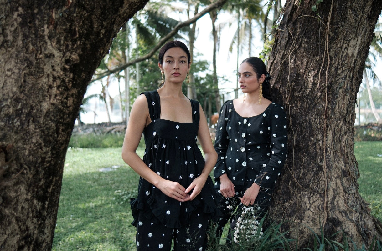 Handcrafted MOTHER OF PEARL EMBROIDERY ON LINEN, made by artisans in India.
