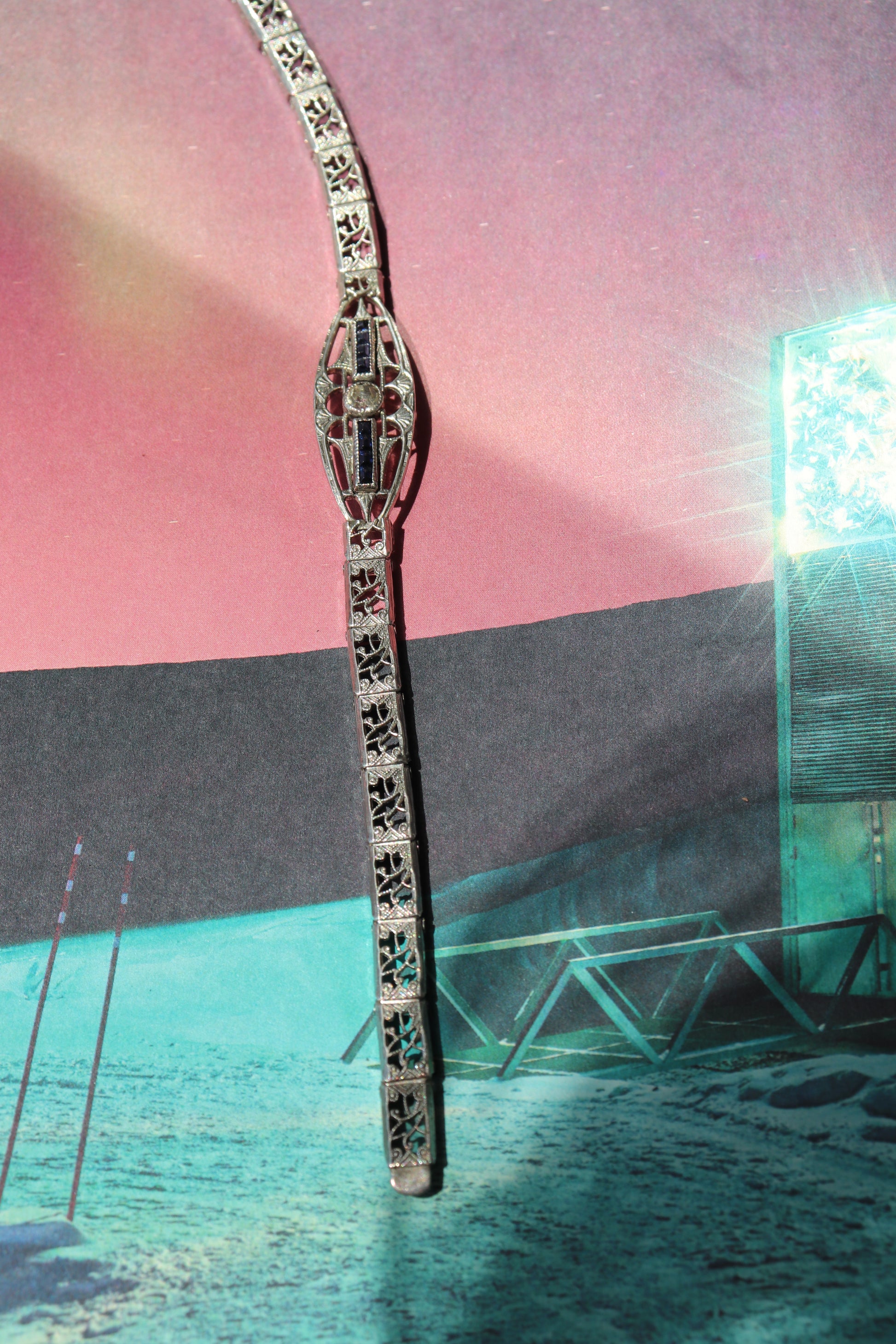 A BEAUTIFUL and Timeless, Antique bracelet feat. Tiny sapphires and crystal. Ornate detail, a special piece.