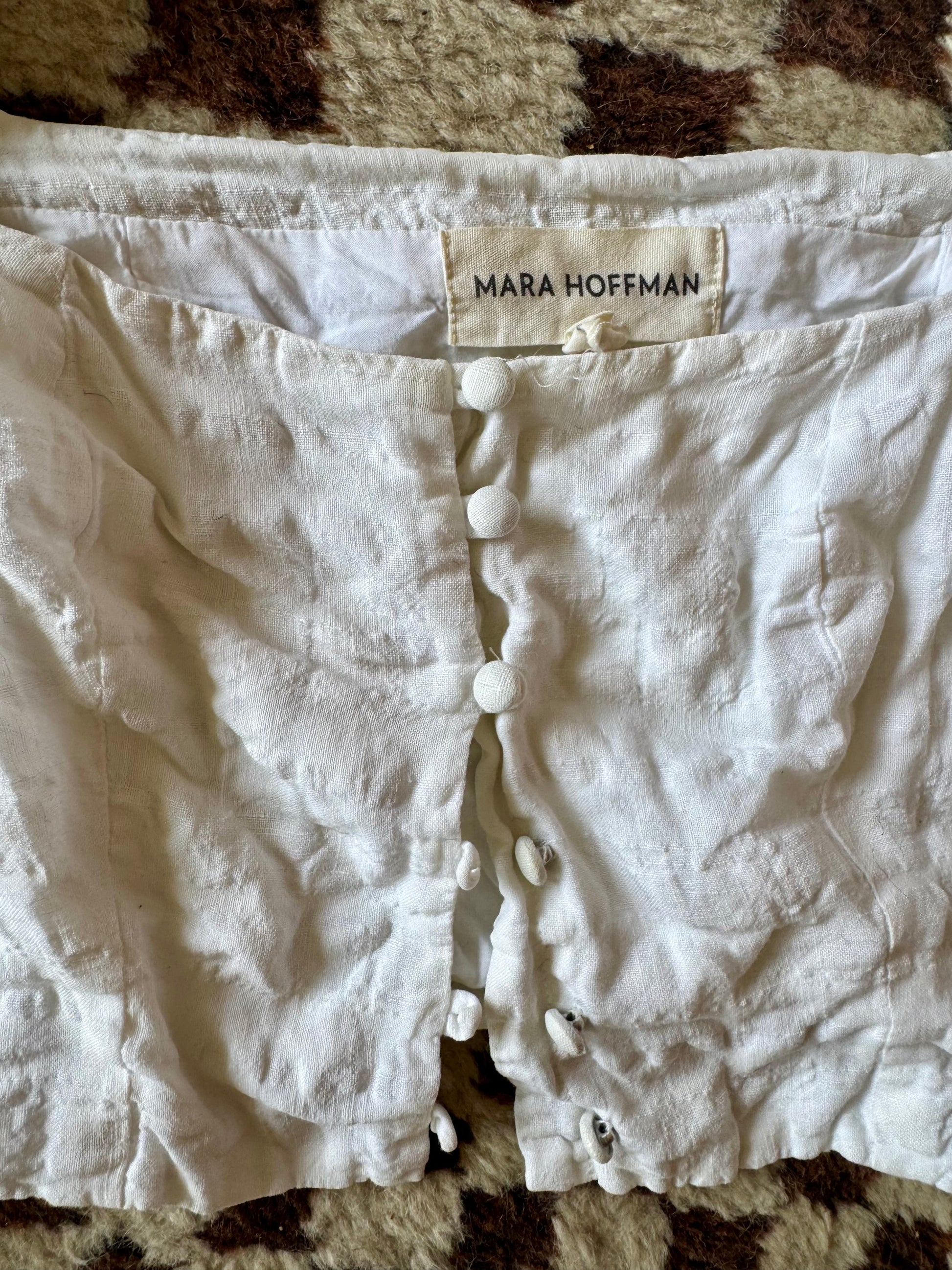 Fabulous crop from an iconic designer Mara Hoffman perfect for styling back with high waisted pieces.